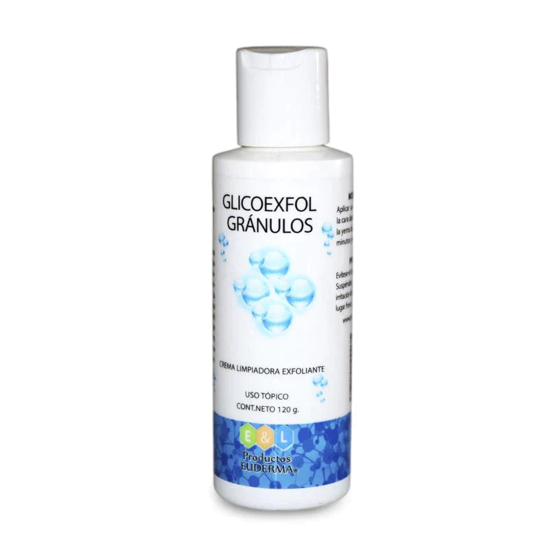 Glicoexfol Gránulos es una crema limpiadora emulsificante de grasas, exfoliante.
